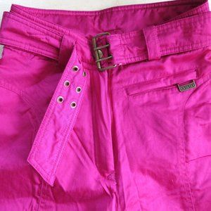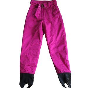Vintage 80s OSSI Stirrup Ski Pants S Fuchsia High Rise Belted Pocket Zip