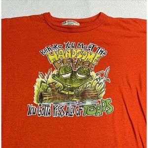 Vintage 80s Orange Single Stitch Toad Prince Funny Gag Graphic Shirt Size Large. Tagged as a size Large but due to the age of production it fits more like a modern size medium. Please see pictures for condition and measurements for proper sizing and fit.