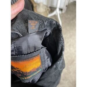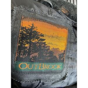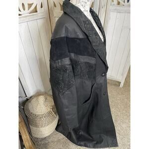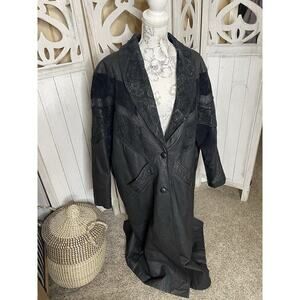 Vintage 80s Outbrook Leather Trench Coat Car Jacket Navajo Tribal Size 2XL