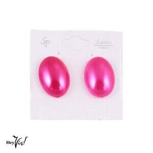 Vintage 80s Oval Button Earrings Glitter Club Style w Shiny Finish 1" - Hey Viv