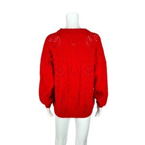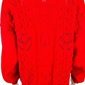 Vintage 80s Oversize Sweater Red Tulips Pom Pom's Acrylic Pullover