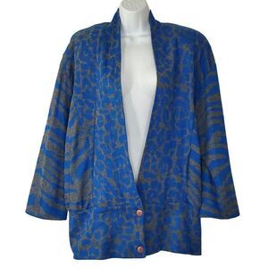 Vintage 80s Oversized Cardigan Sweater Sz M Animal Zebra Cheetah Leopard Gray Blue