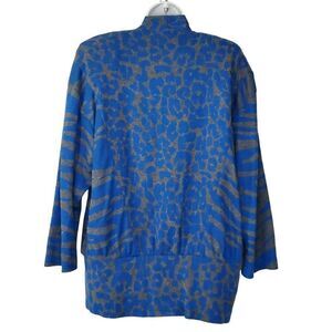 Vintage 80s Oversized Cardigan Sweater Sz M Animal Zebra Leopard Gray Blue