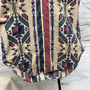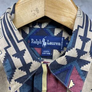 Vintage 80s POLO Ralph Lauren Womens Loop Collar Camp Shirt Southwest Aztec