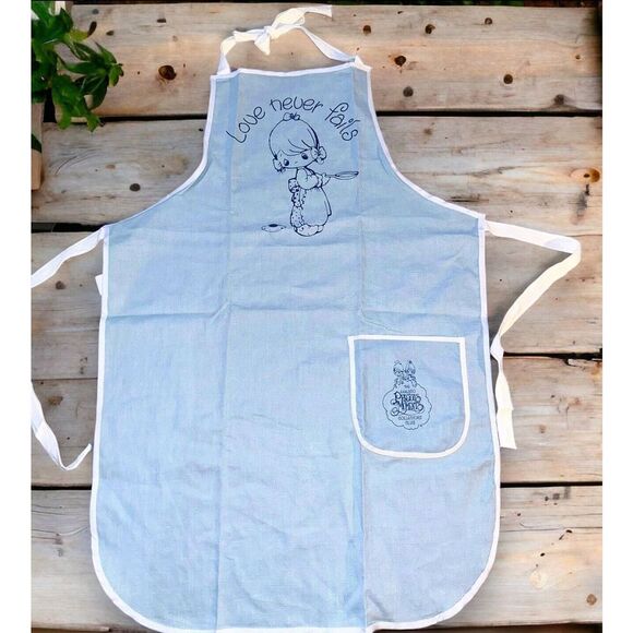 This vintage apron, from the 80's, is a must-have for collectors of the PRECIOUS MOMENTS Love Never Fails Collectors Club. The beautiful blue color and high-quality cotton material make it a perfect addition to any kitchen.