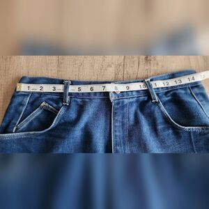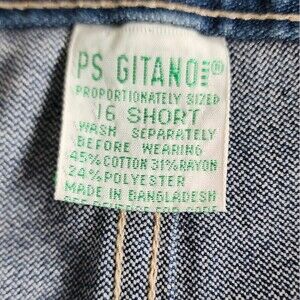 Vintage 80s P.S. Gitano women's size 16 short mom high rise tapered blue denim jeans. Has a small frayed area near the button, as seen in the photo. No stains, no pilling, and the zipper is in excellent working condition.
