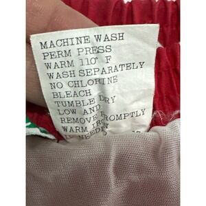Elevate your poolside presence with these vintage-inspired swim trunks, a bold statement piece that effortlessly blends retro charm with modern comfort. The eye-catching red, white, and blue stripes command attention, creating a look that's both sporty and stylish. A comfortable elastic waistband with a drawstring ensures a secure and custom fit, allowing you to move with ease whether you're swimming laps or lounging by the water. Lightweight fabric dries quickly, making these shorts ideal for spontaneous dips and sun-soaked afternoons. Although this item is gently used with some marks on the white area and some imperfections