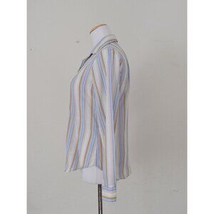 Vintage 80s striped long sleeves blouse in good vintage condition. This shirt has been used and washed a lot, it's paper-thin semi-sheer material.