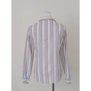Vintage 80s Paper-Thin Striped Poly/Cotton Womens Shirt