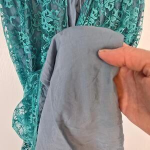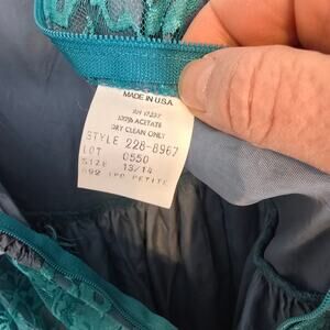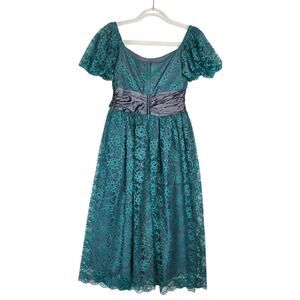 Vintage 80’s Paragon Teal Lace Formal Prom Midi Dress Gray Lining Waist Rosette