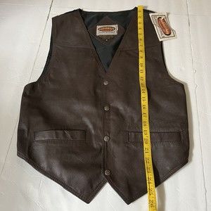 Vintage 80s Paragraff Clothing Genuine Leather Vest Size M Brown Snap Button