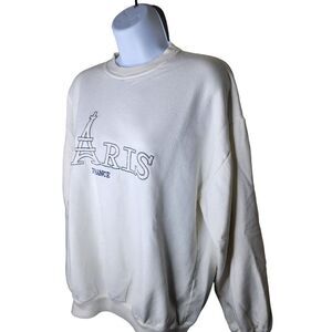 Vintage Paris France Eiffel Tower Long Sleeve Sweatshirt Womens Size M White