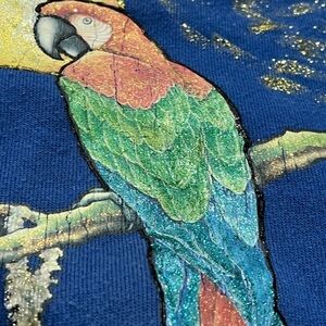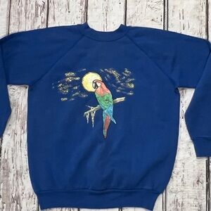 Vintage 80s Parrot Bird Animal Print 1980s Blue Pullover Sweatshirt