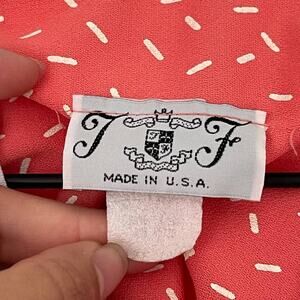 Vintage 80s Party V-Neck Wrap Pink Confetti Blouse Size Small Retro Funky