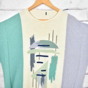 Vintage 80s Pastel Abstract Grandpa Golf Sweater