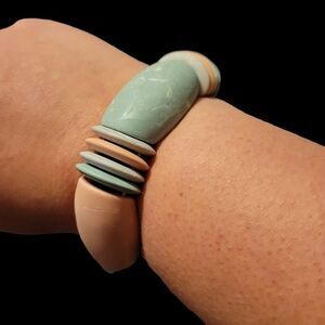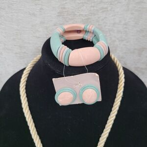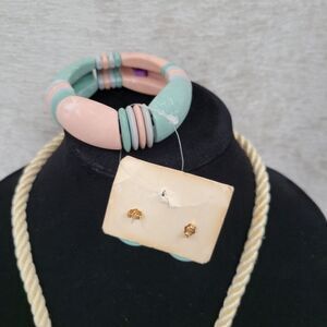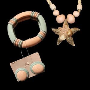 Soft Peachy Pink and Green Pastel Bracelet and Stud Earrings set. Not original too the Starfish Necklace but match perfectly. Starfish Necklace has gold tone backing on a rope style necklace.