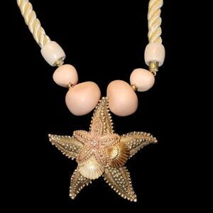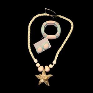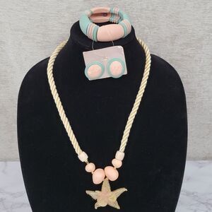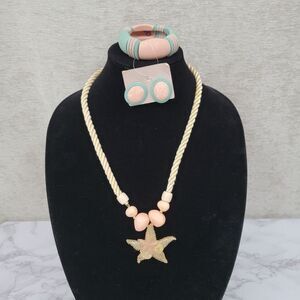 Vintage 80s Pastel Jewelry Set Starfish Pendant Necklace Earrings Bracelet