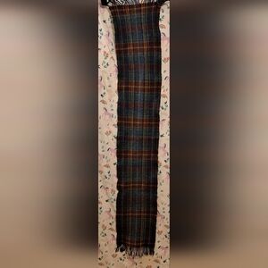 Vintage 80s Paul Costelloe Blue & Red Plaid Wool Casual Unisex Scarf w/ Fringe