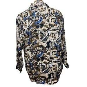 Vintage 80’s Paul at Duffier Button Down Shirt Abstract Print Brown Blue Medium