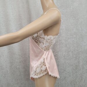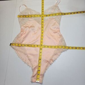 Vintage 80s Peach Lace Trimmed Satin Bodysuit Coquettegirl