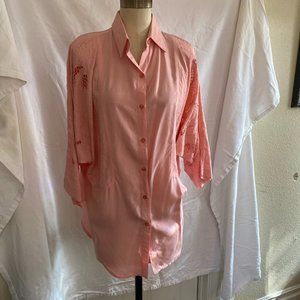 Vintage 80s Peach Long Sleeve Dolman Button Down Tunic, sz. M