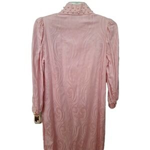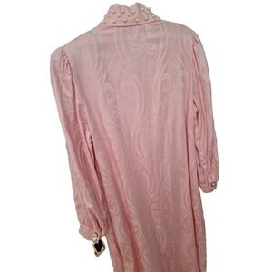 Vintage 80s Pearl Collar House Coat Pink Damask Women Size Small
