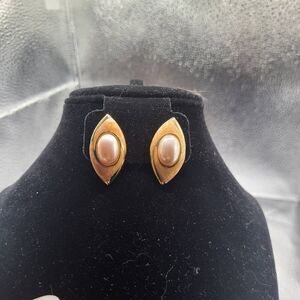 Vintage 80s Pearl and Enamel Goldtone Stud Earrings