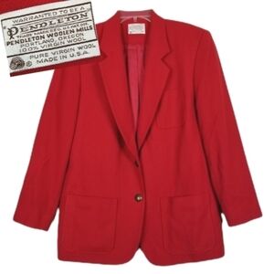 Vintage 80s Pendleton 100% Wool Blazer Red Gold Embossed Buttons Size 8 USA