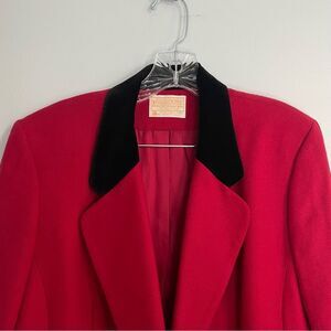 Vintage 80’s Pendleton Red 100% Wool Crop Blazer With Black Velvet Collar Sz 10