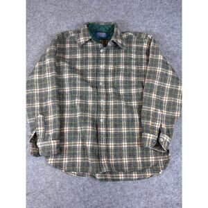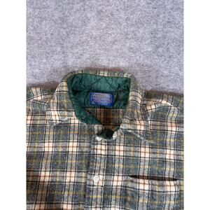 Vintage 80s Pendleton Wool Flannel Plaid Button Up Shirt Mens XL Gray Yellow