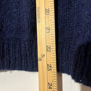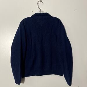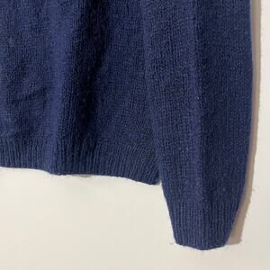Vintage 80s Perry Ellis Hand Knit 100% Wool Navy Blue Collared Sweater Womans M