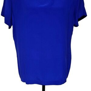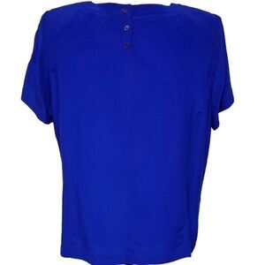 Vintage 80s Pia Rucci Royal Blue Silk Short Sleeve Crewneck Boxy Blouse M