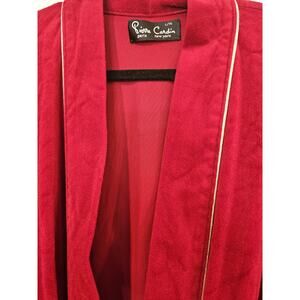 Vintage 80s Pierre Cardin Belted Bath Long Robe Pockets Velour Men's Red Hefner