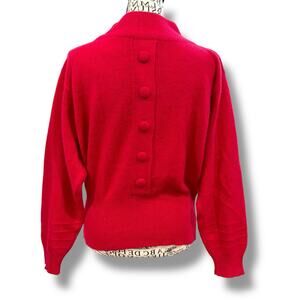 Vintage 80s Pierre Cardin Size S Red Wool Angora Button Sweater Shoulder Pads