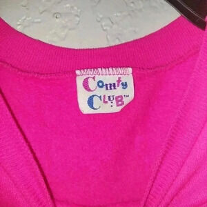 Vintage 80’s Pink Comfy Club Bear Sweater Long Sleeve Nightgown Size Medium. Cracking on print.
