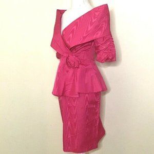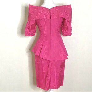 Vintage 80s Pink Taffeta Skirt Set Suit Small USA