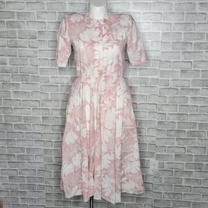 Vintage 80s Pink & White Tropical Floral Midi Dress