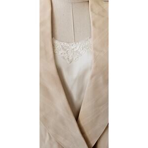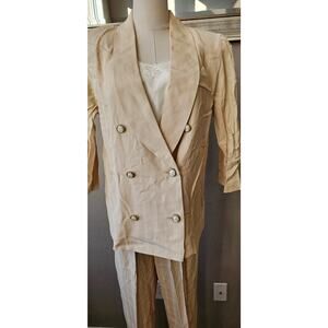 Vintage 80s Pinstripe Light Tan Suit Pants Jacket w/ Top Insert Women Sz 10