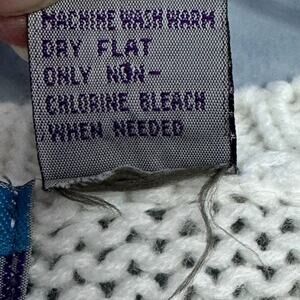 100% acrylic. Made in Korea. Machine wash, dry flat.