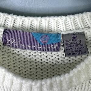 Vintage 80s Pinwheels Panda Bear Christmas Tree Cream Sweater Women's Size L.