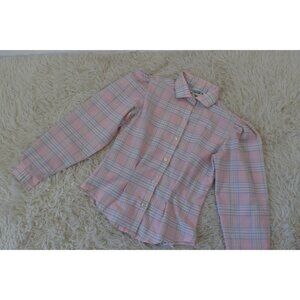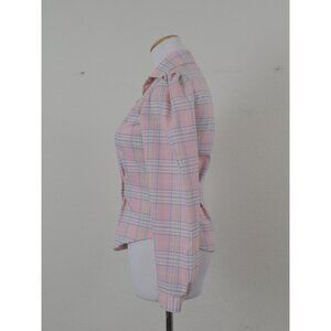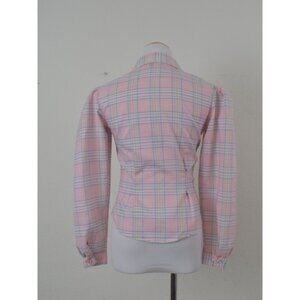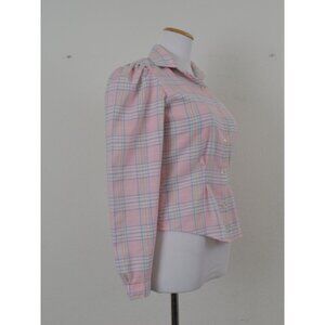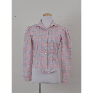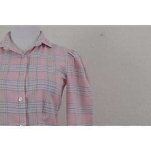 Vintage 80s Plaid Long Sleeves Poly/Cotton Pastel Button up Blouse
