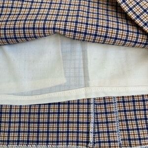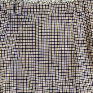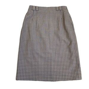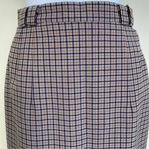 Vintage 80s Plaid Wool Blend Pencil Midi Skirt Tan/Blue Academia Preppy Sz XS