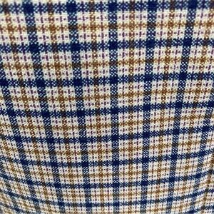 Creamish/yellowish background with tan and blue plaid pattern