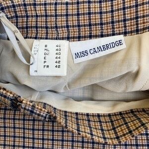 Vtg Plaid Wool Blend Pencil Midi Skirt Tan Blue Academia Preppy Cocquette