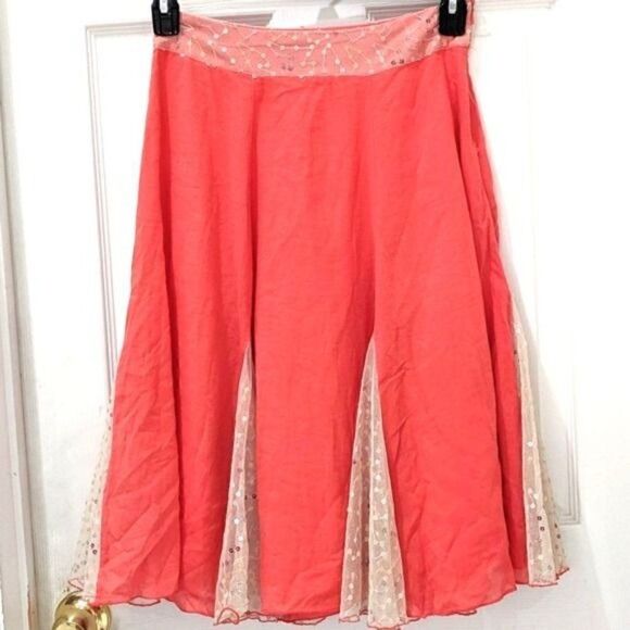 Fairyesque vintage midi pleated flowy twirling sequin coral skirt
