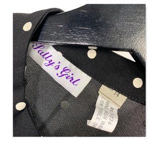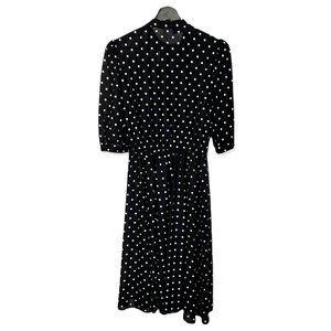 Vintage 80s Polka Dot Asymmetrical Collar Secretary Dress Medium