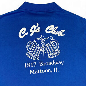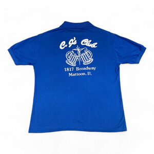 Vintage 80s Polo Shirt Adult MEDIUM Blue Bar Tavern Pocket Work Shirt CJs Club