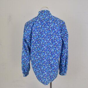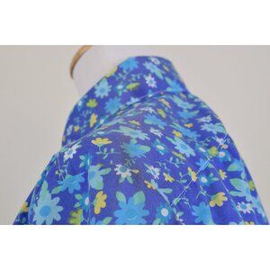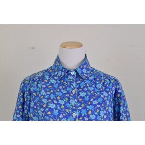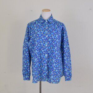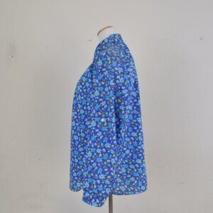Vintage 80s Poly/Cotton Blue Floral Print Blouse | size Large