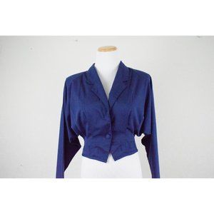 Vintage 80s Poly/Rayon Royal Blue Crop Blouse/Jacket | size Medium