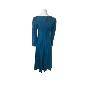 Vintage 80s Poof Shoulder Teal Fit and Flare Midi Dress S/M